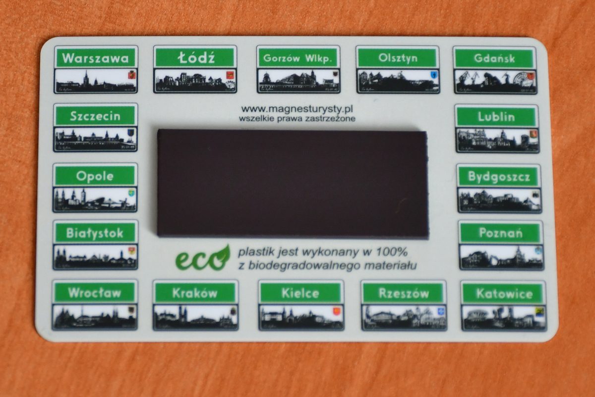 Więcej informacji o projekcie znajduje się na stronie https://www.magnesturysty.pl Magnes jest w 100% produktem polskim. Wykonany z biodegradowalnego, wytrzymałego ekoplastiku jest bezpieczny dla środowiska. Dzięki przemyślanemu rozmiarowi (wymiary karty kredytowej) magnes dobrze wygląda na lodówce i zmieści się do portfela. Część magnetyczna jest wytrzymała i nie pozostawia zabrudzeń.